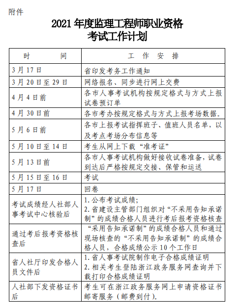 浙江關(guān)于做好 2021 年度監(jiān)理工程師職業(yè)資格考試考務(wù)工作的通知