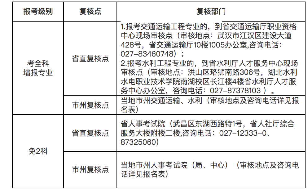 交通、水利行業(yè)主管部門負責對報本行業(yè)“考全科”或“增報專業(yè)”的考生進行資格審核,各地人社部門 負責對報考“免2科”的考生進行資格審核。