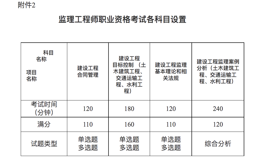 監(jiān)理工程師職業(yè)資格考試設《建設工程監(jiān)理基本理論和相關(guān)法規(guī)》(客觀題)、《建設工程合同管理》(客觀題)、《建設工程目標控制》(客觀題)和《建設工程監(jiān)理案例分析》(主觀題)4個科目(見附件3)。其中《建設工程監(jiān)理基本理論和相關(guān)法規(guī)》和《建設工程合同管理》為基礎科目;《建設工程目 標控制》和《建設工程監(jiān)理案例分析》為專業(yè)科目。