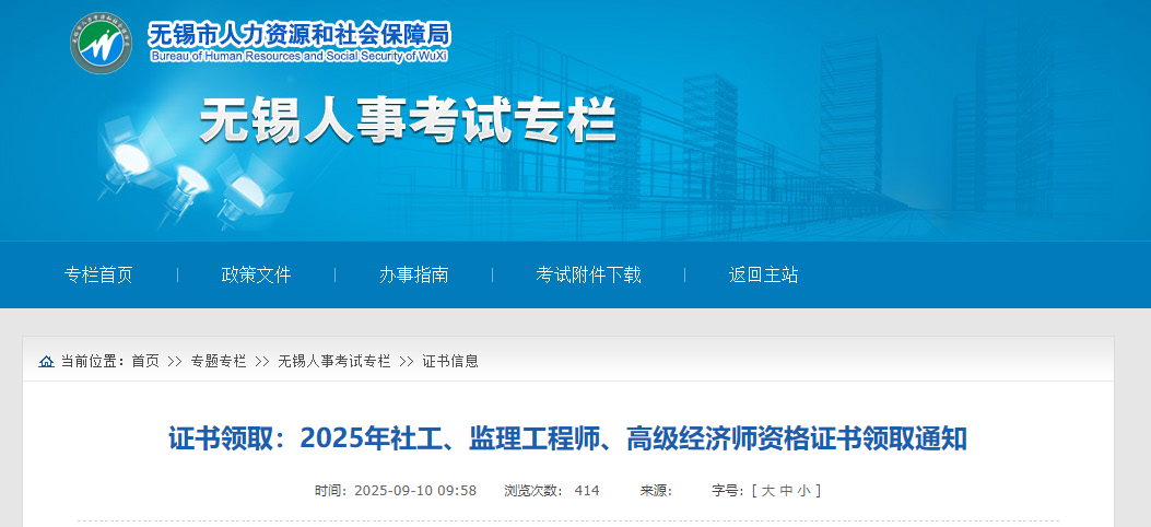 證書領(lǐng)?。?025年社工、監(jiān)理工程師、高級經(jīng)濟(jì)師資格證書領(lǐng)取通知