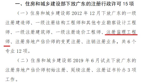廣東省住建廳關(guān)于調(diào)整注冊監(jiān)理工程師執(zhí)業(yè)資格注冊業(yè)務(wù)辦理事項的通知