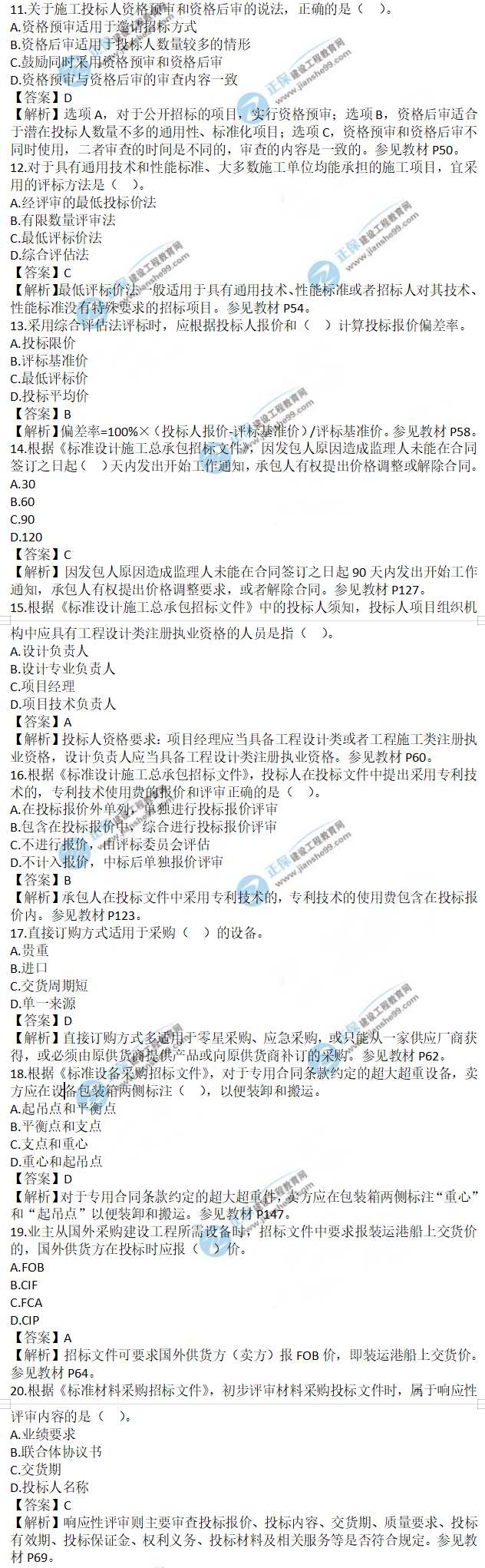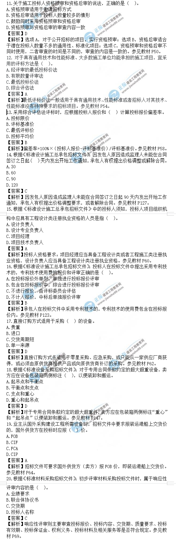 2021年監(jiān)理工程師合同管理試題及答案11-20題,建設(shè)工程教育網(wǎng)考后將會根據(jù)學員反饋進行匯總,考試過后,廣大考生最關(guān)心的問題莫過于2021年監(jiān)理工程師合同管理試題及答案11-20題了,網(wǎng)校會及時匯總2021年監(jiān)理工程師合同管理試題及答案分享給大家,并且做出答案解析,希望能為廣大監(jiān)理考生朋友帶來幫助。