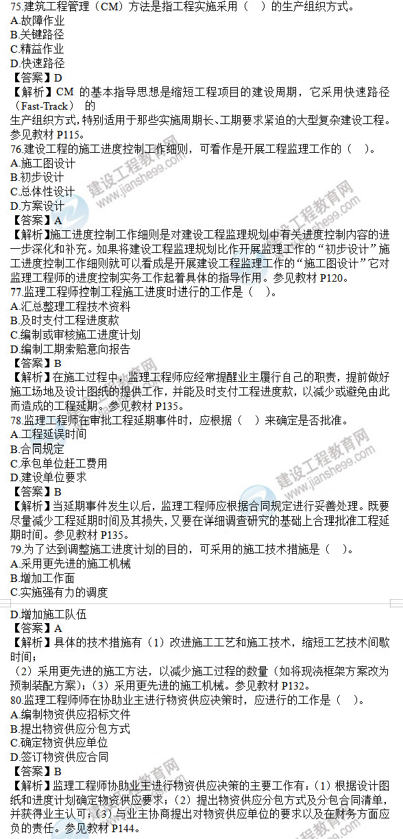2021年監(jiān)理工程師土建控制試題及答案71-80題,建設(shè)工程教育網(wǎng)考后將會(huì)根據(jù)學(xué)員反饋進(jìn)行匯總,考試過后,廣大考生最關(guān)心的問題莫過于2021年監(jiān)理工程師土建控制試題及答案71-80題了,網(wǎng)校會(huì)及時(shí)匯總2021年監(jiān)理工程師土建控制試題及答案分享給大家,并且做出答案解析,希望能為廣大監(jiān)理考生朋友帶來幫助。