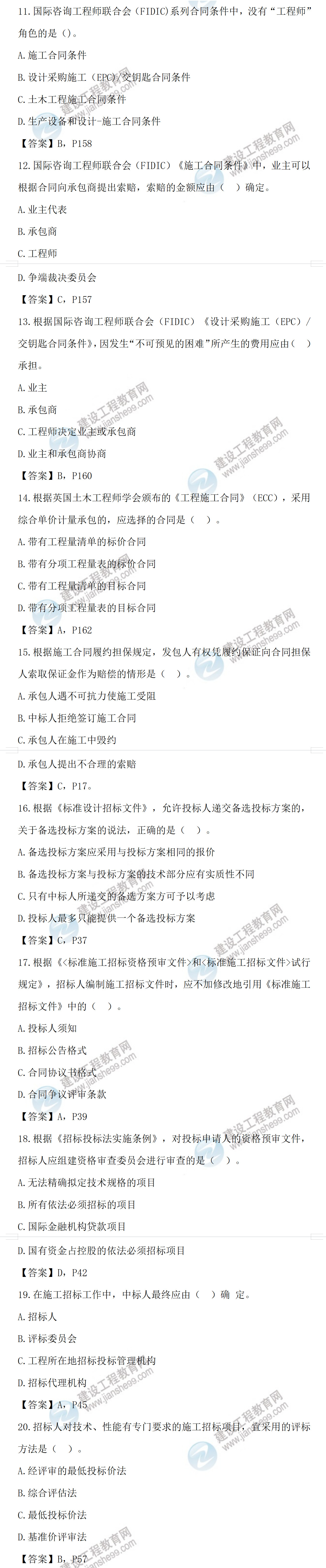 2022年監(jiān)理工程師合同管理考試及答案11-20題(補(bǔ)考)