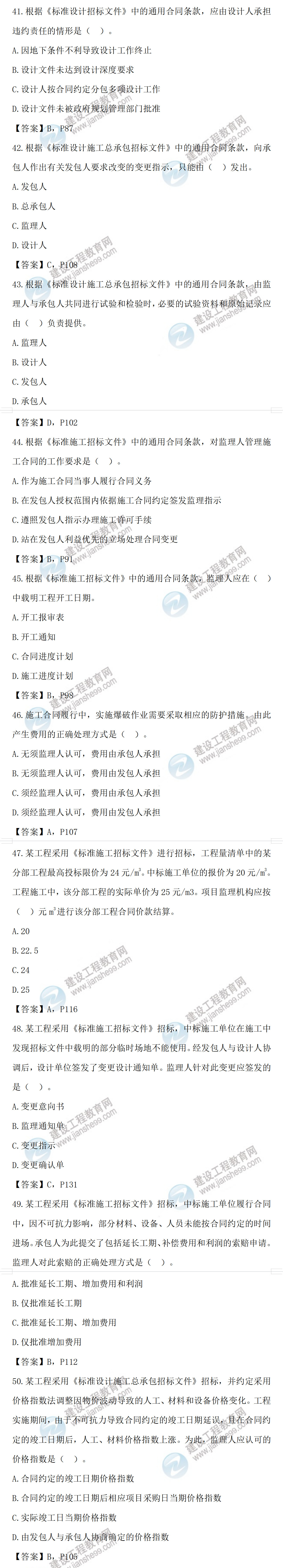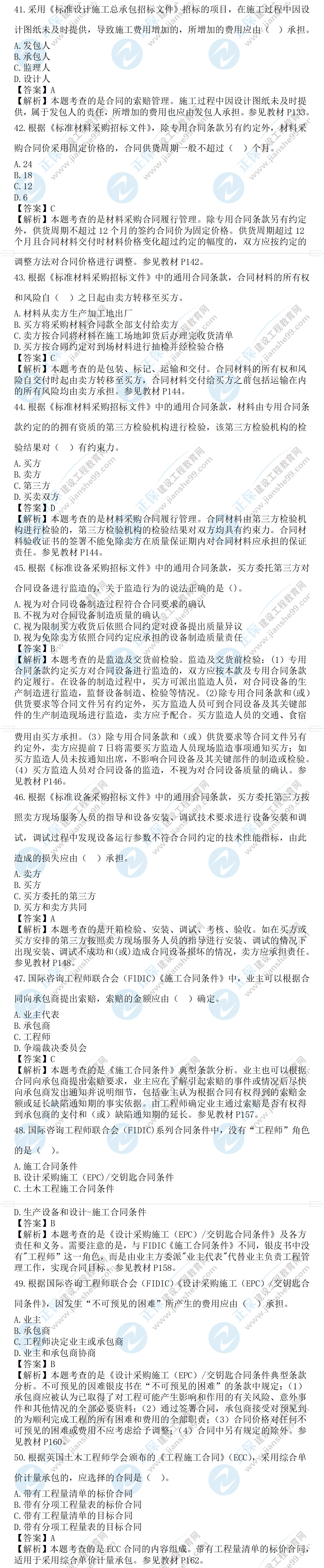 2022年監(jiān)理工程師合同管理考試及答案41-50題(補(bǔ)考)