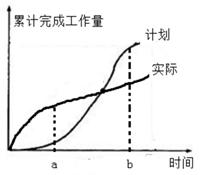 某工作實施過程中的S曲線如下圖所示,圖中a和b兩點的進度偏差狀態(tài)是( )。