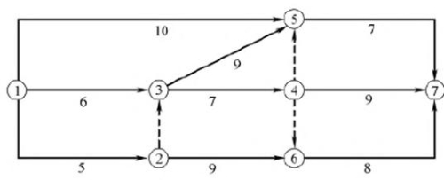 【答案解析】 本題考查的是雙代號(hào)網(wǎng)絡(luò)計(jì)劃。本題可用標(biāo)號(hào)法快速找出關(guān)鍵線(xiàn)路,本題的關(guān)鍵線(xiàn)路有①→③→⑤→⑦、①→③→④→⑦、①→②→⑥→⑦三條。