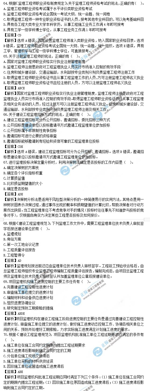 2021年監(jiān)理工程師理論和法規(guī)試題及答案61-70題,建設(shè)工程教育網(wǎng)考后將會根據(jù)學(xué)員反饋進(jìn)行匯總,考試過后,廣大考生最關(guān)心的問題莫過于2021年監(jiān)理工程師理論和法規(guī)試題及答案61-70題了,網(wǎng)校會及時匯總2021年監(jiān)理工程師理論和法規(guī)試題及答案分享給大家,并且做出答案解析,希望能為廣大監(jiān)理考生朋友帶來幫助。