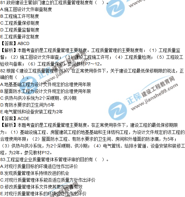 2018年監(jiān)理《建設(shè)工程質(zhì)量、投資、進(jìn)度控制》試題及答案多選(81-90)
