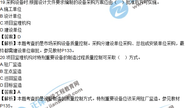 2018年監(jiān)理《建設(shè)工程質(zhì)量、投資、進度控制》試題及答案單選(11-20)