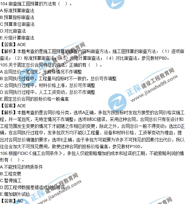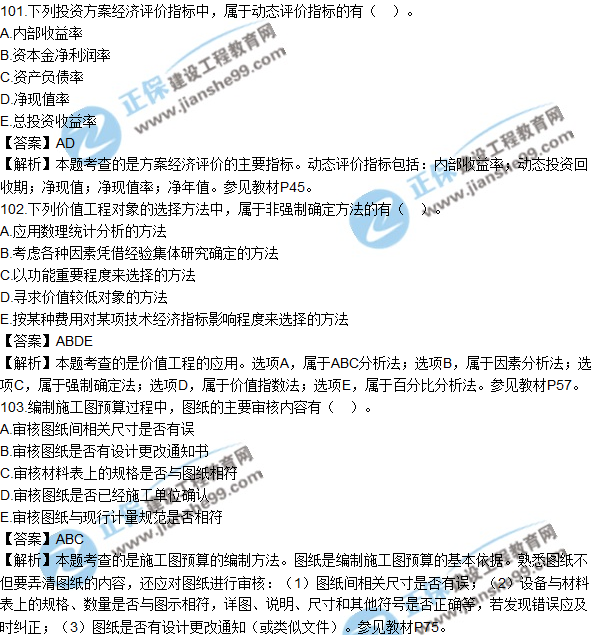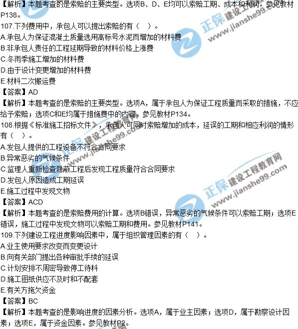2018年監(jiān)理《建設工程質量、投資、進度控制》試題及答案多選(101-110)