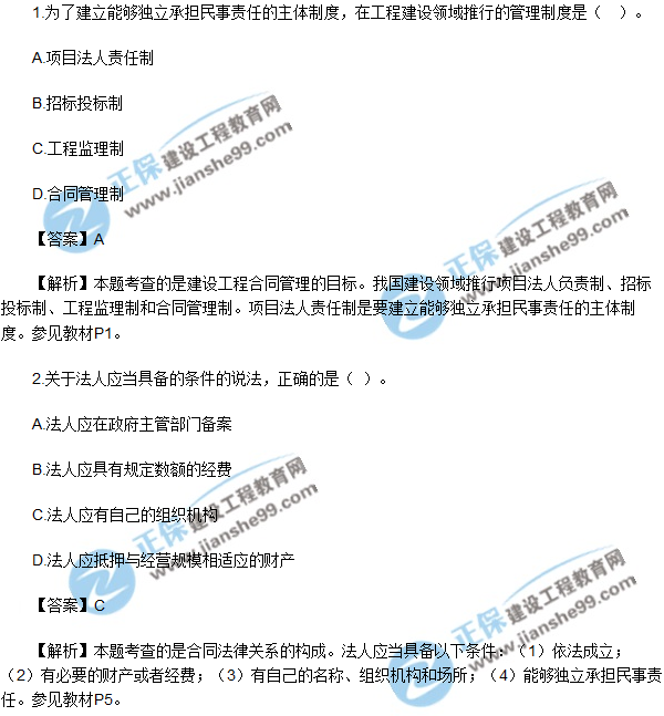 2018年監(jiān)理工程師《合同管理》試題及答案單選(1-10)