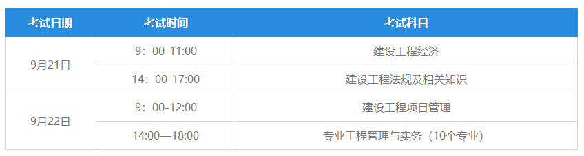 2019年一級建造師考試時(shí)間為9月21日至22日,具體安排如下: