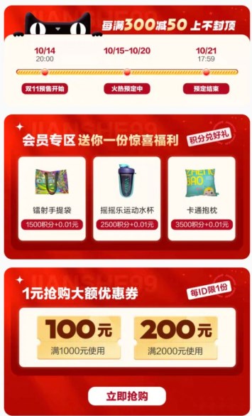 活動力度:店鋪商品每滿300減50,還可1元搶購100/200元大額優(yōu)惠券(數(shù)量有限,每個ID限購1份)