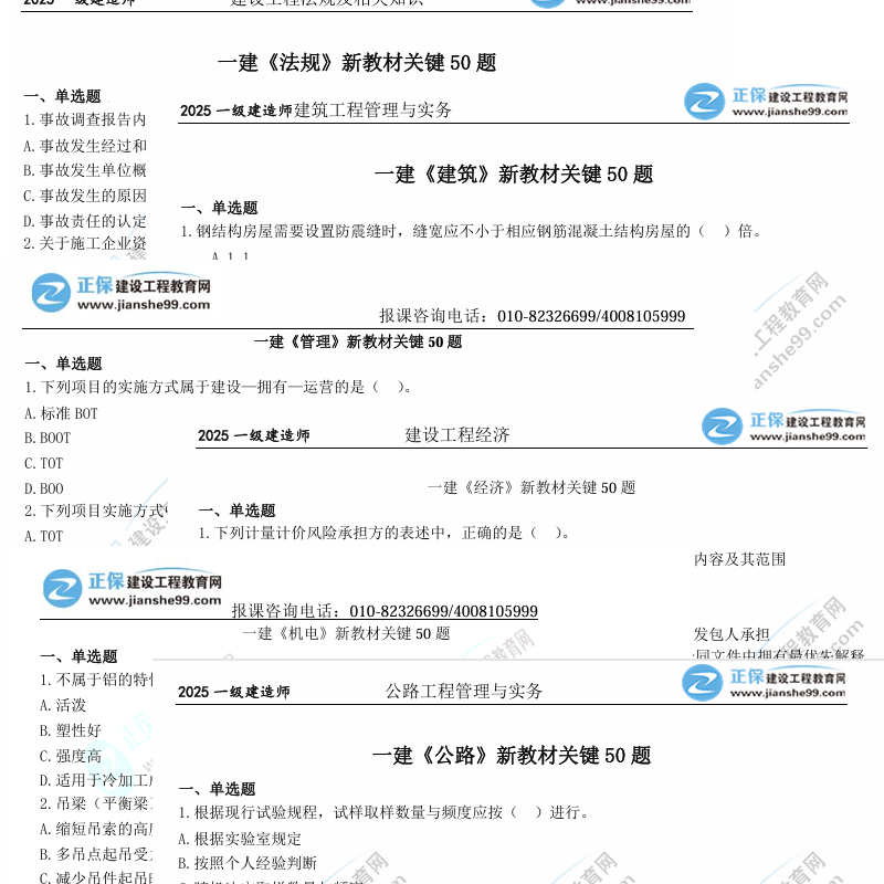 0元領(lǐng)!2025年一級建造師新教材關(guān)鍵50題