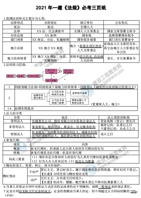 2021年一級(jí)建造師工程法規(guī)考前三頁紙