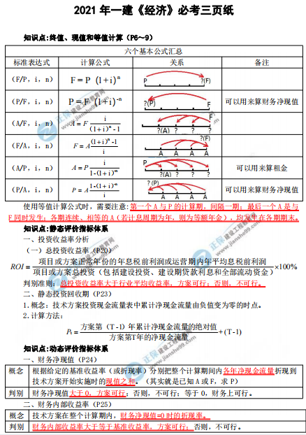 2021年一級建造師工程經(jīng)濟(jì)考前三頁紙