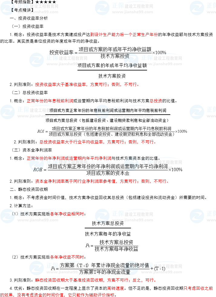 【30天預(yù)習(xí)計劃】一建工程經(jīng)濟知識點3:靜態(tài)評價指標(biāo)體系