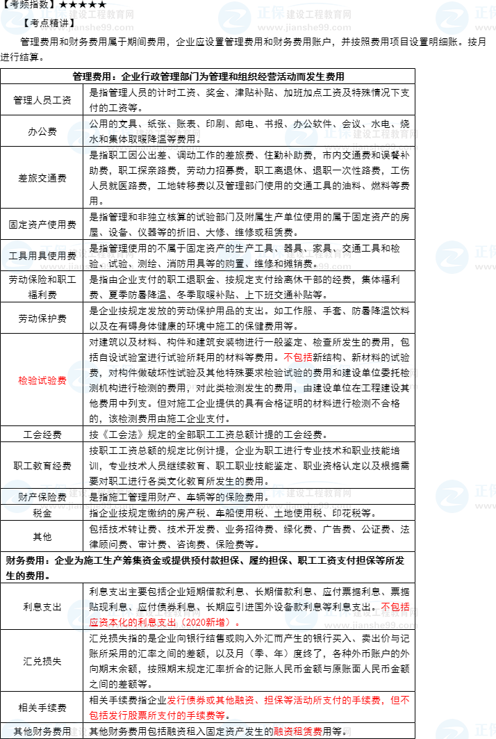 一級建造師考試工程經濟知識點9:期間費用的核算