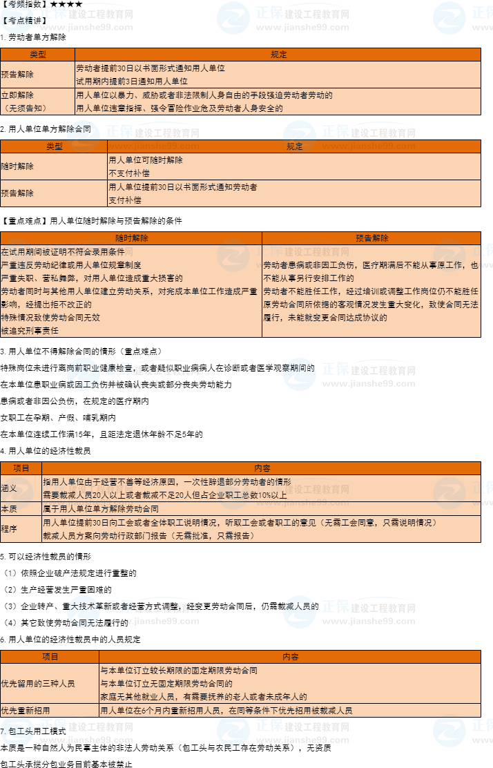 一建工程法規(guī)知識(shí)點(diǎn)15:勞動(dòng)合同的解除和終止