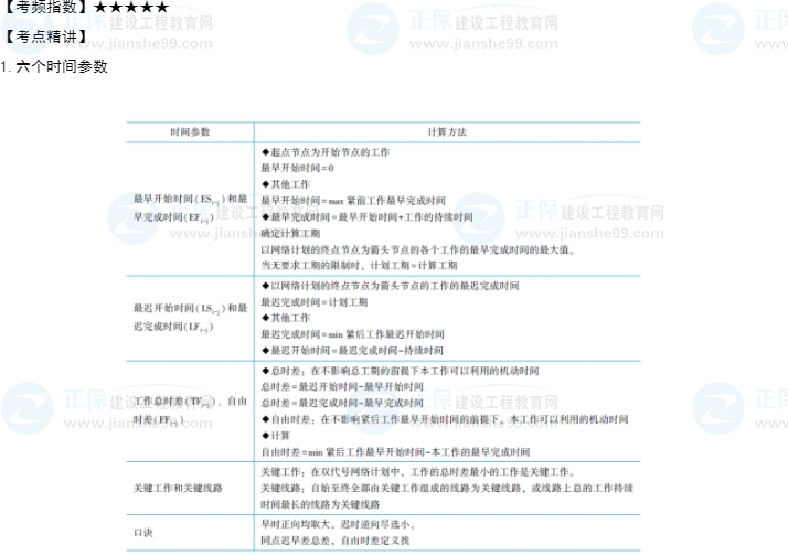 一建項目管理知識點15:雙代號網絡計劃時間參數的計算