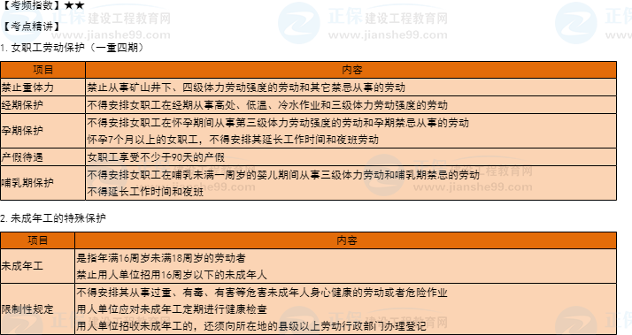 【30天預(yù)習(xí)計劃】一建工程法規(guī)知識點16:女職工和未成年工的特殊保護(hù)