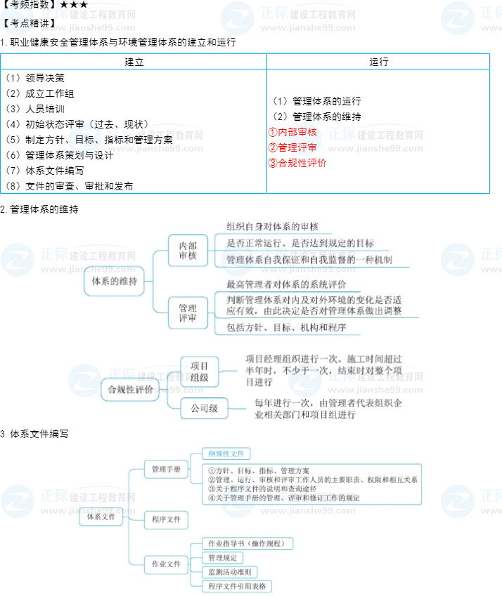 一建項目管理知識點23:職業(yè)健康安全管理體系與環(huán)境管理體系的建立和運行