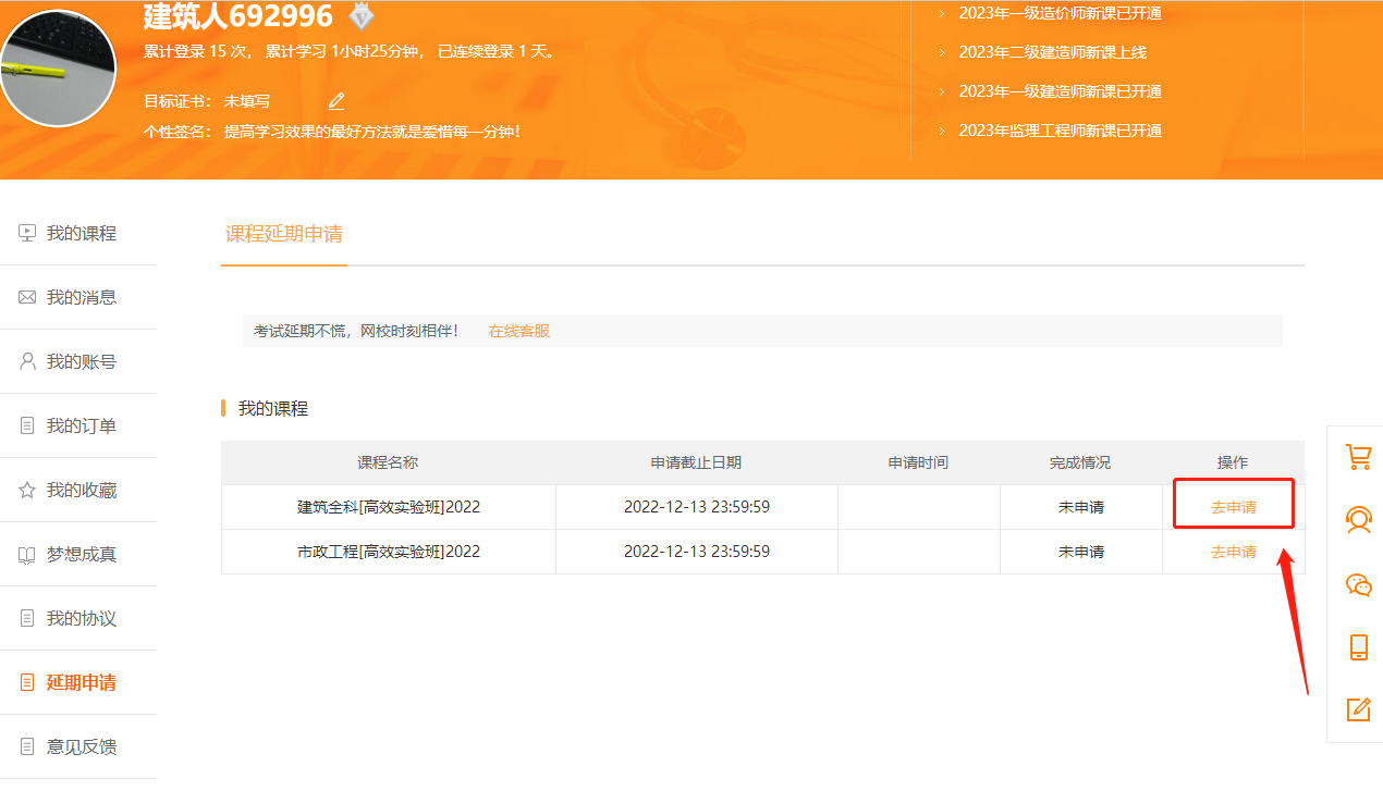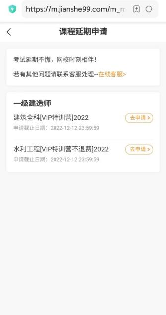 之前已經(jīng)報名網(wǎng)校2022年一級建造師考試課程的同學(xué),可以申請延期課程了,入口在“我的網(wǎng)校我的家”,請大家及時申請,不要錯過。