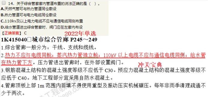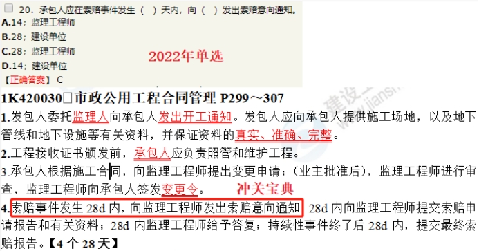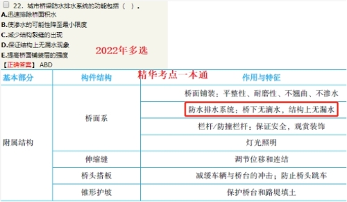 主觀題部分,五道案例分別以道路、橋梁、水廠和管道為大背景,考查了涉及到水泥混凝土路面、橋梁上部結構施工、工程降排水、沉井施工和燃氣管道等內容。值得注意的是今年水處理場站工程的分值占比是最大的。五道案例題中均涉及到相關的背景識圖,不過沒有相關的計算考查。主觀題整體考查方式比較靈活、開放,更加偏向施工現場,涉及到教材原文的知識點不多。