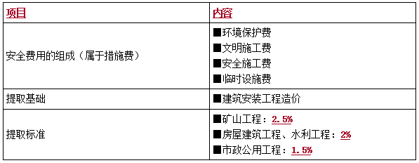 2.安全費用組成及提取標(biāo)準(zhǔn)(以下為最低標(biāo)準(zhǔn))