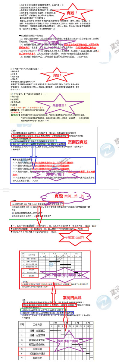 機(jī)電實(shí)務(wù)考試回歸教材是王道,只有掌握好了教材內(nèi)容,夯實(shí)了基礎(chǔ),答題才能得心應(yīng)手。因?yàn)閷W(xué)員朋友工作生活已經(jīng)占據(jù)了多數(shù)的時(shí)間,所以擠出時(shí)間來(lái)按部就班的學(xué)習(xí)教材內(nèi)容成為大家最基本但又最難做到的。因此網(wǎng)校歸納總結(jié)了一些高頻考點(diǎn),幫助學(xué)員起到事半功倍的效果,比如網(wǎng)校幫助大家總結(jié)的《沖關(guān)寶典》中就出現(xiàn)了好多試題的“影子”。再例如橫道圖是每年機(jī)電實(shí)務(wù)案例考試的經(jīng)典考點(diǎn),日常的練習(xí)和老師的講解都非常重視該考點(diǎn),通過(guò)講解和練習(xí)會(huì)讓學(xué)員朋友掌握該內(nèi)容,練習(xí)的橫道圖和今年案例中的橫道圖考查核心基本相同。經(jīng)過(guò)初步統(tǒng)計(jì)網(wǎng)校總結(jié)的《沖關(guān)寶典》、《考前內(nèi)部資料》、《模擬試題》等資料,總體覆蓋分值在50~60分左右,這對(duì)于一分難倒英雄漢的實(shí)務(wù)考試來(lái)說(shuō),無(wú)疑如虎添翼!