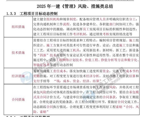 2025年一建《管理》風(fēng)險、措施類總結(jié):