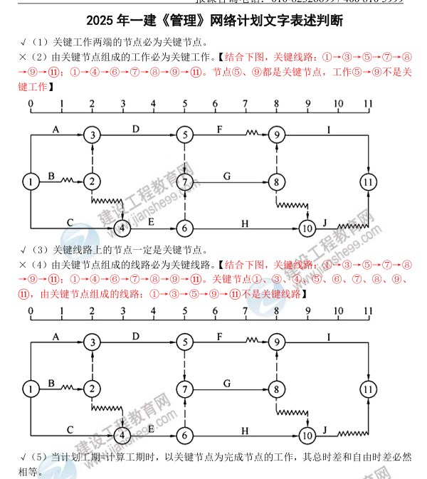 2025年一建《管理》網(wǎng)絡(luò)計劃文字表述判斷: