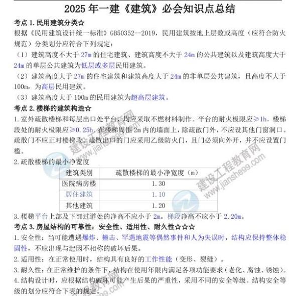 2025年一建《建筑》經(jīng)典內(nèi)容總結(jié):