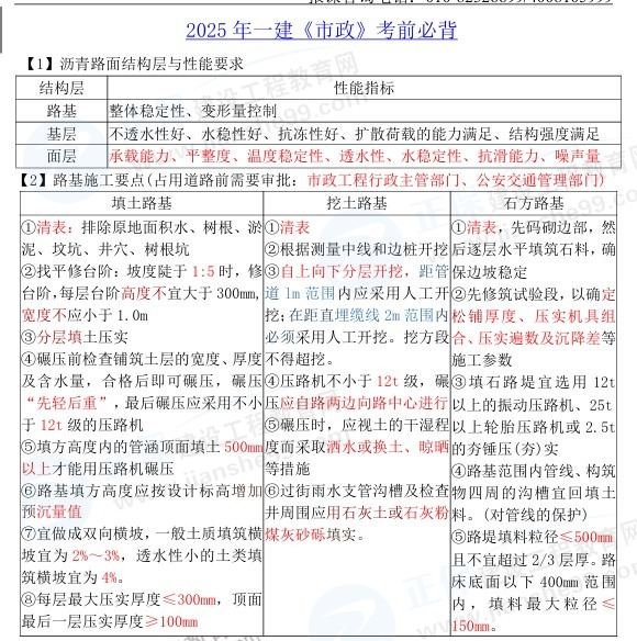 25年一級建造師《市政工程》數(shù)字、知識點總結(jié)