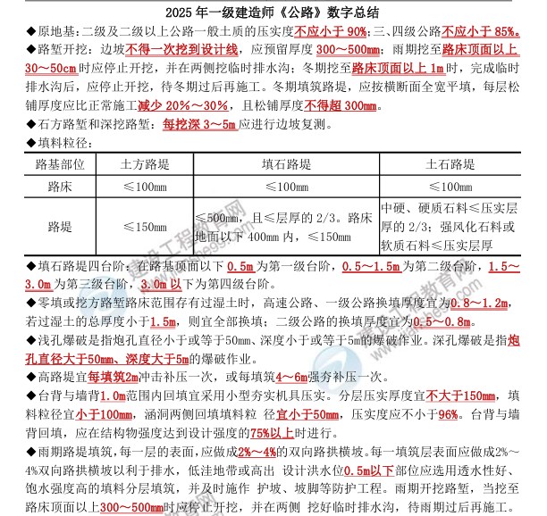 25年一級建造師《公路工程》數(shù)字、知識點總結(jié)