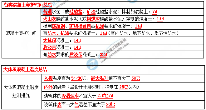 2021一建建筑實(shí)務(wù)考點(diǎn):各類(lèi)混凝土養(yǎng)護(hù)時(shí)間、大體積混凝土溫度總結(jié)