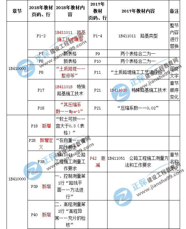 2018一級建造師《公路工程》新舊教材對比解析匯總