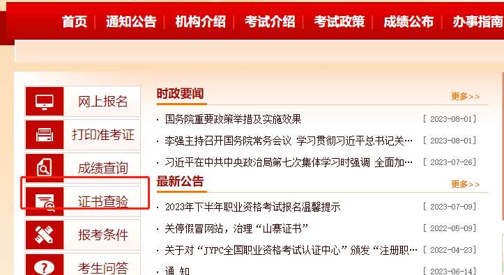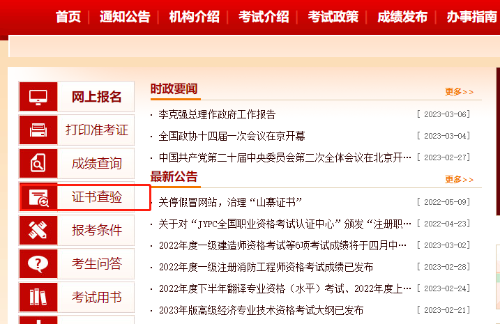 第一步:打開中國人事考試網(wǎng)-點(diǎn)擊證書查驗(yàn)。