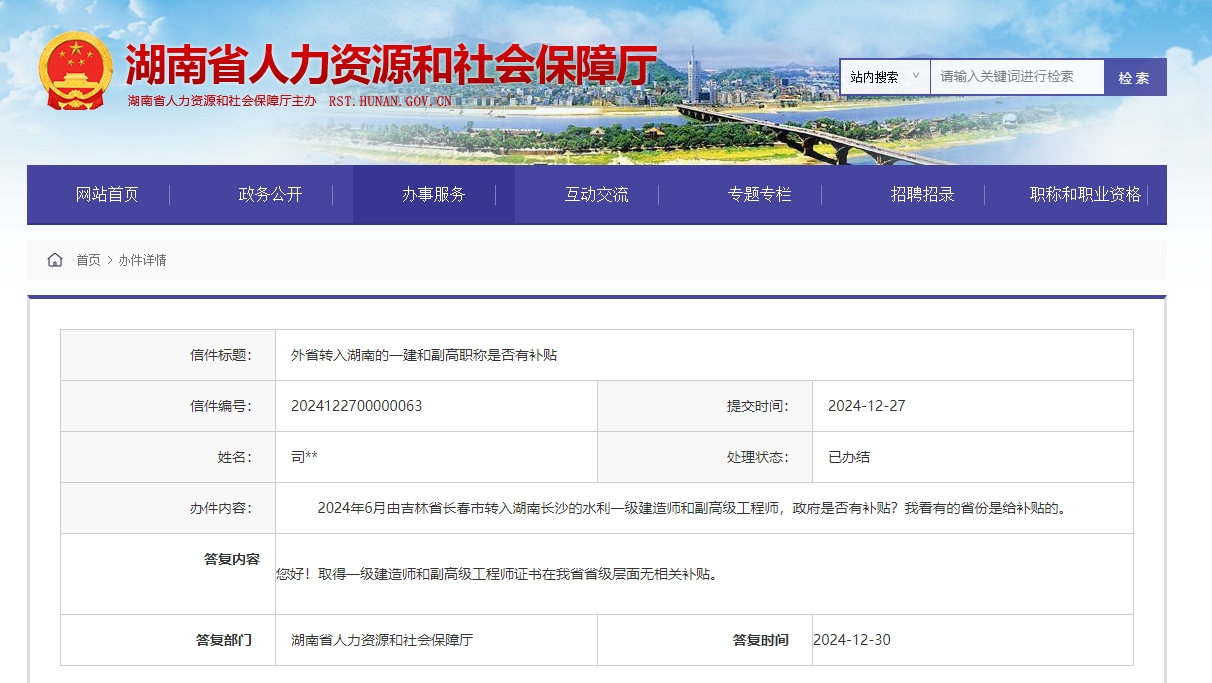 問題:2024年6月由吉林省長春市轉(zhuǎn)入湖南長沙的水利一級建造師和副高級工程師,政府是否有補貼?我看有的省份是給補貼的。
