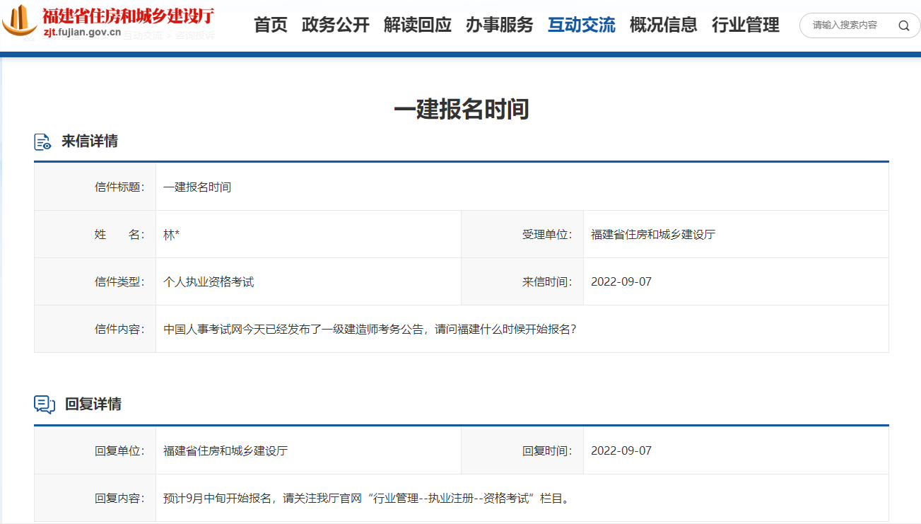 官方回復(fù):2022年福建一級(jí)建造師預(yù)計(jì)9月中旬開始報(bào)名