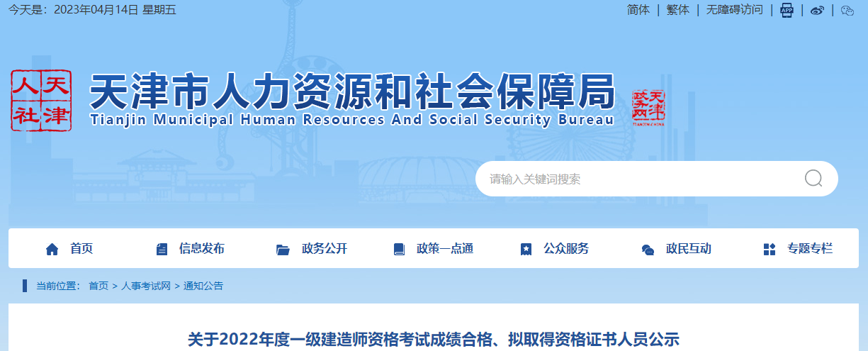 天津市關于2022年度一級建造師資格考試擬取得資格證書人員公示