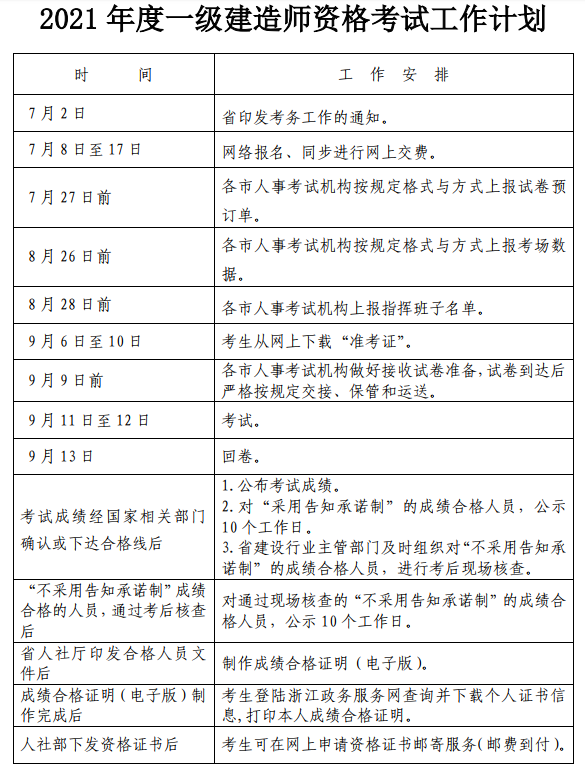 浙江關(guān)于做好2021年度一級建造師資格考試考務(wù)工作的通知