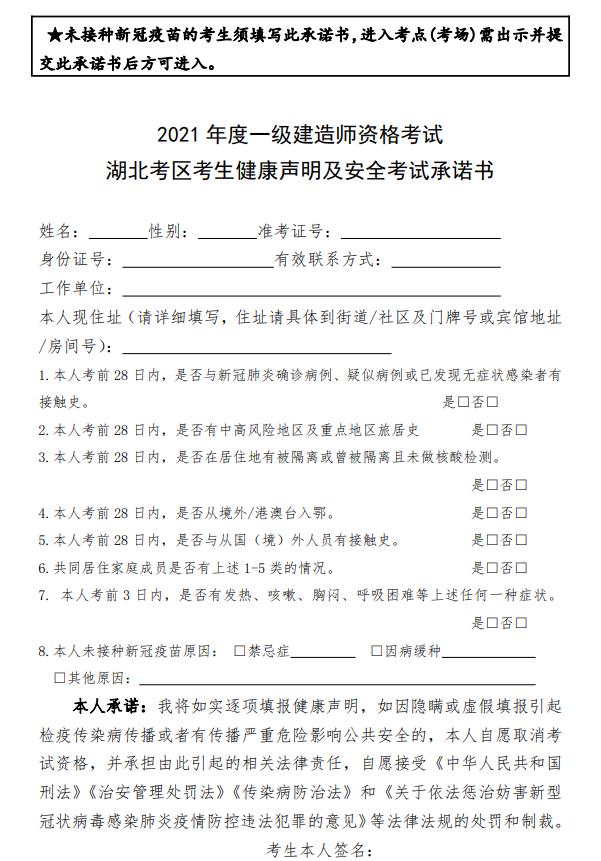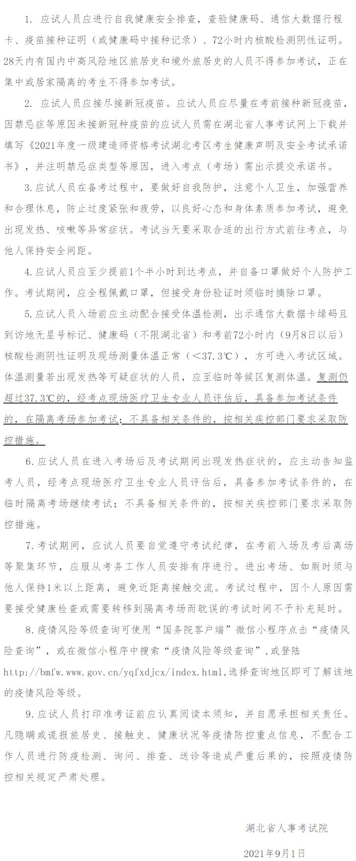 2021年度全國一級建造師資格考試湖北考區(qū)疫情防控須知