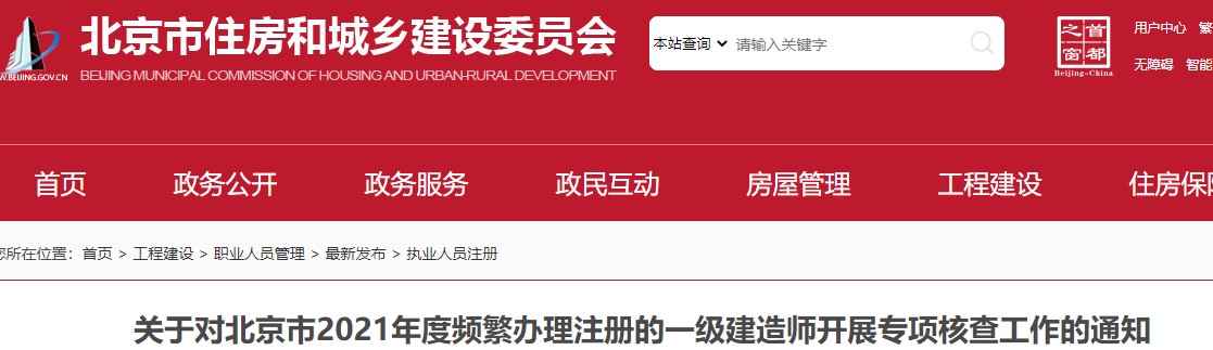 關(guān)于對北京市2021年度頻繁辦理注冊的一級建造師開展專項核查工作的通知