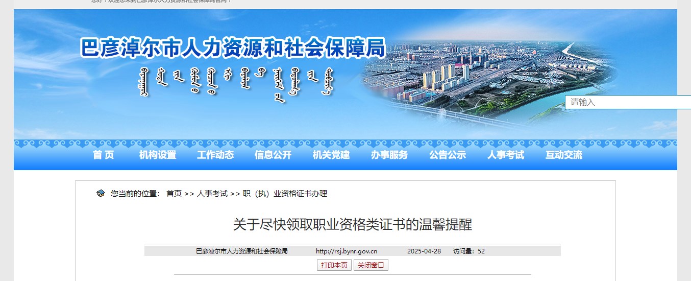 巴彥淖爾市發(fā)布關(guān)于盡快領(lǐng)取職業(yè)資格類證書的溫馨提醒