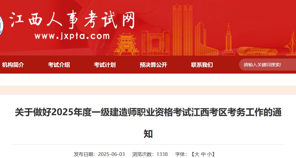 江西人事考試網(wǎng)發(fā)布關(guān)于做好2025年度一級建造師職業(yè)資格考試江西考區(qū)考務(wù)工作的通知,具體信息如下: