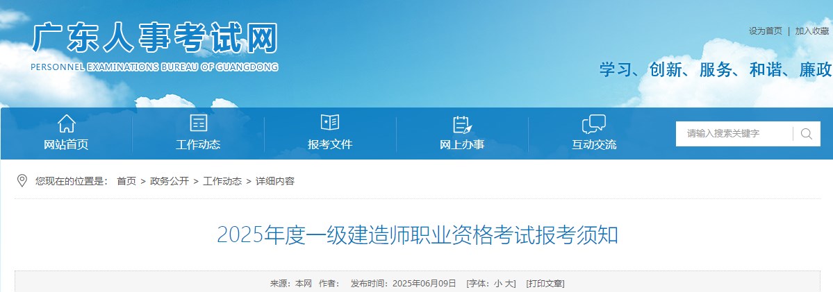 廣東人事考試網(wǎng)發(fā)布2025年度一級(jí)建造師職業(yè)資格考試報(bào)考須知,具體信息如下: