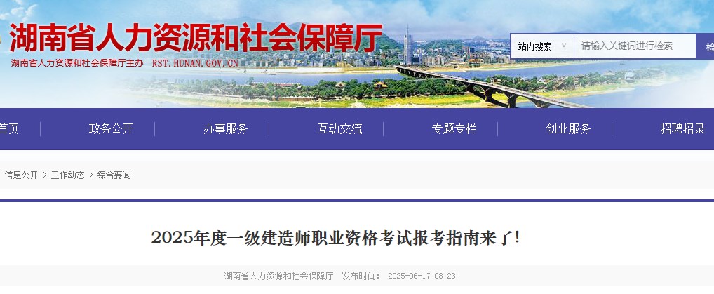 湖南省人力資源和社會(huì)保障廳發(fā)布2025年度一級(jí)建造師職業(yè)資格考試報(bào)考指南來(lái)了!,具體信息如下: