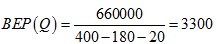 某建設(shè)項(xiàng)目的年設(shè)計(jì)生產(chǎn)能力為5000臺(tái),單臺(tái)產(chǎn)品銷售價(jià)格為400元,年固定成本為660000元,單臺(tái)產(chǎn)品可變成本為180元,單臺(tái)產(chǎn)品稅金為20元。則其產(chǎn)量的盈虧平衡點(diǎn)為( )。
